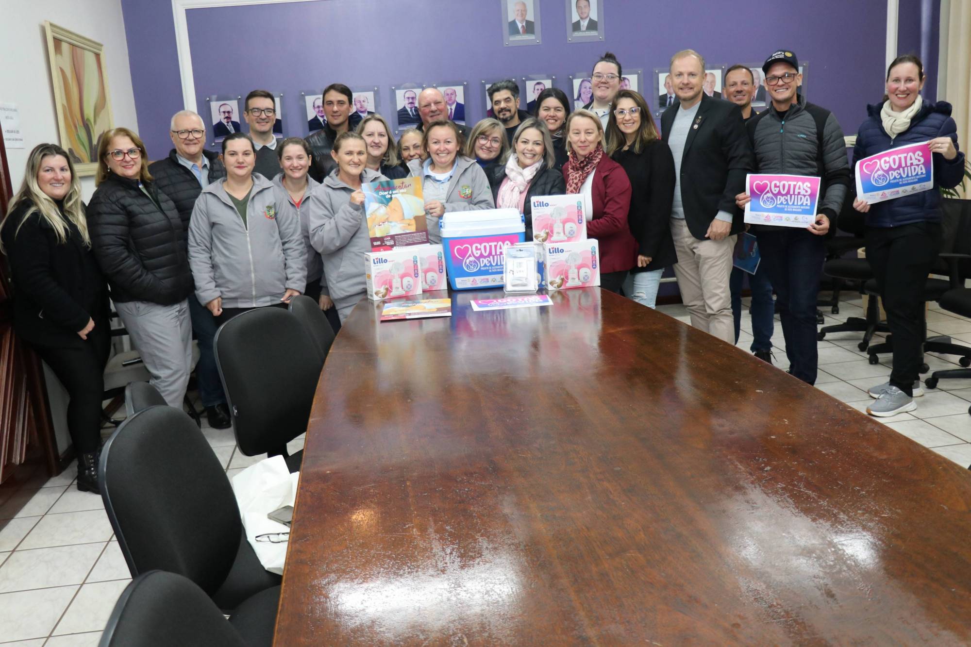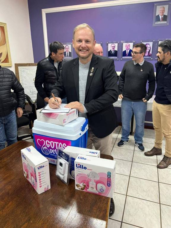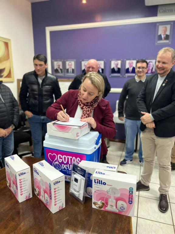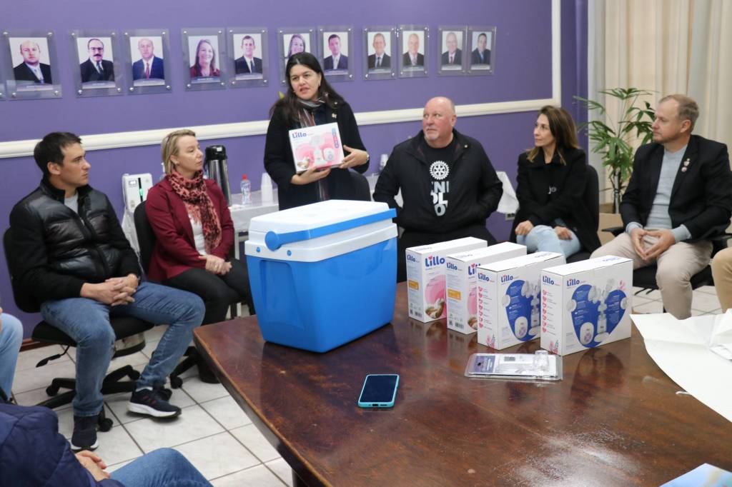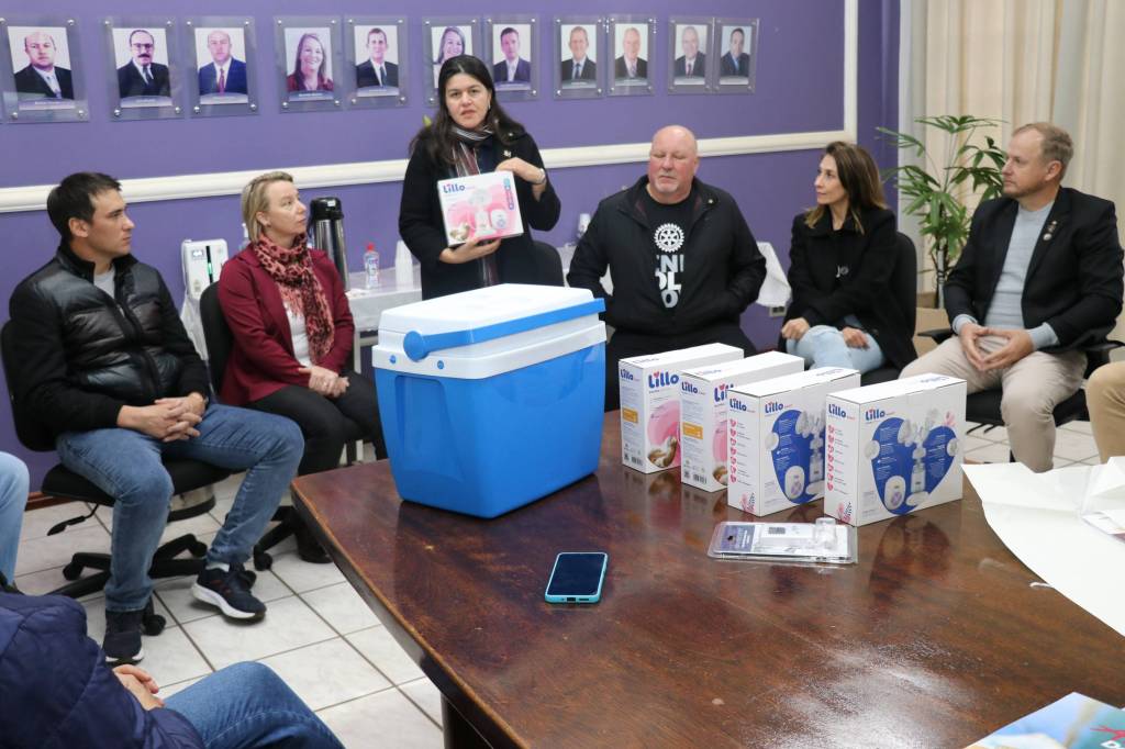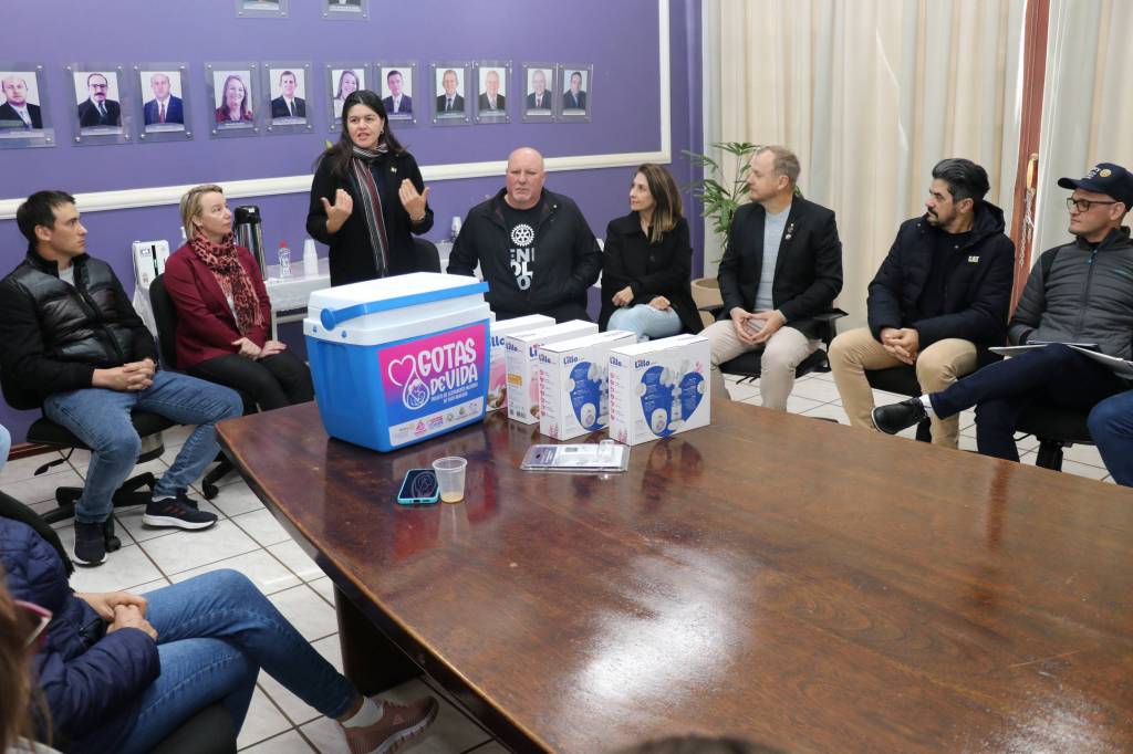 Na tarde desta quarta-feira, representantes do Rotary Club 25 de Julho, acompanhados do presidente Marcelo Wiederkehr (gestão 2024/2025), estiveram reunidos com o prefeito de Pato Bragado, John Nodari, a secretária de Saúde e vice-prefeita Simone Tornquist, o chefe de Gabinete Leomar Rohden (Mano) e servidores municipais para oficializar a adesão do município ao projeto “Gotas de Vida” — uma iniciativa já existente e que agora conta com o fortalecimento da parceria institucional do Rotary, por meio do PROAMAR – Programa de Aleitamento Materno.