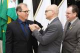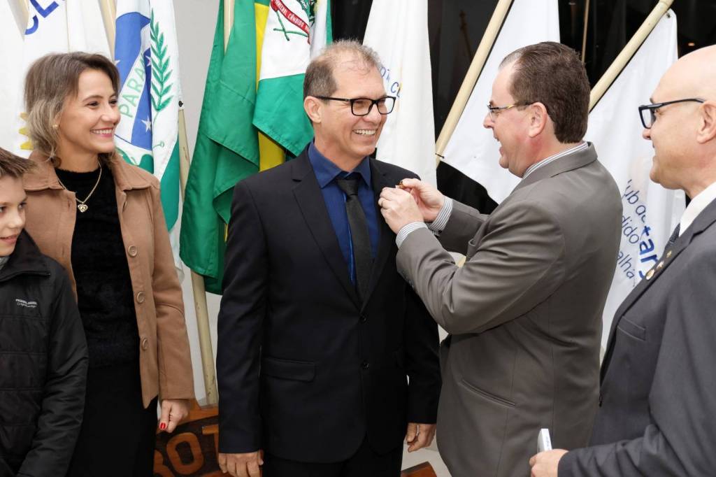 Um dos momentos marcantes da solenidade foi a entrega do título Companheiro Paul Harris ao rotariano Carlos Alexandro Becker, em reconhecimento à sua doação voluntária à Fundação Rotária, fortalecendo o legado da gestão que se encerra.