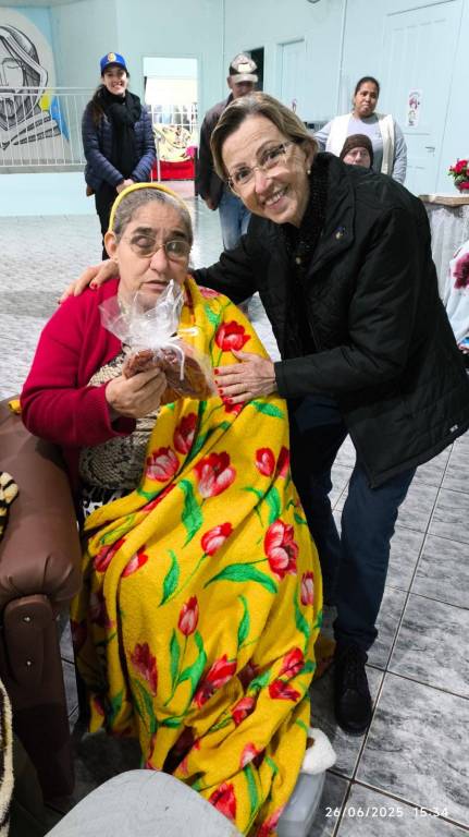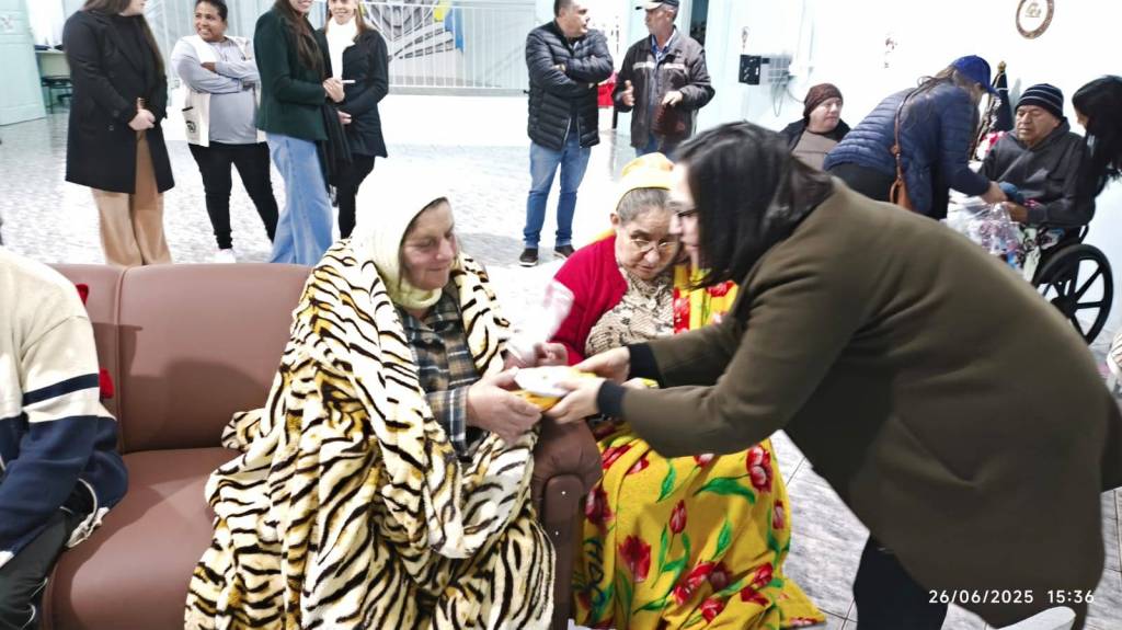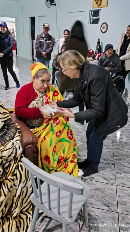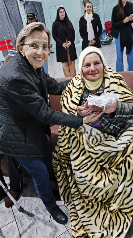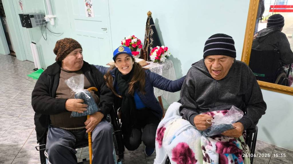 As toucas, todas confeccionadas à mão com muito carinho pela companheira rotariana Renate, aquecerão não apenas os dias frios, mas também os corações daqueles que tanto já contribuíram com suas histórias de vida. Cada ponto de lã traz consigo um abraço simbólico, uma demonstração de cuidado e respeito pelos idosos.