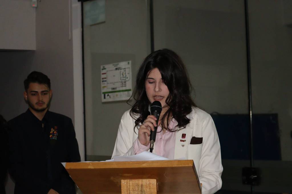 Em seu discurso, a presidente reeleita Nicoly falou sobre a emoção de liderar o clube e a força da família rotária em sua vida: