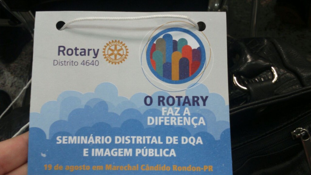 Os companheiros Carolina, da Comissão de Imagem Pública, e Diogo, presidente da Comissão de Desenvolvimento do Quadro Associativo, participaram do Seminário Distrital de Desenvolvimento do Quadro Associativo e Imagem Pública que aconteceu no último sábado, dia 19, em Marechal Cândido Rondon. Foi uma manhã de muita discussão, aprendizado e troca de informações entre os representantes do Distrito 4640. O governador Eduardo Katsusi Toshimitsu abriu o evento que seguiu com uma excelente palestra do companheiro Alceu Eberhardt sobre questões de DQA e como isso envolve todo o clube. Uma profunda discussão sobre o papel do associado, do presidente do clube e dos presidentes das comissões em prol do resultado final. Após a palestra os grupos de Imagem Pública e DQA foram divididos para tratar especificidades como uso da marca de excelência do Rotary International entre outros. O clube agradece a participação dos companheiros que certamente ampliarão o alcance das informações recebidas e farão com que nosso clube cresça ainda mais!