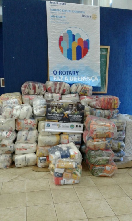 A ação conjunta e solidária foi um sucesso com arrecadação de mais de uma tonelada e meia de alimentos com a participação dos companheiros rotarianos e ASR.