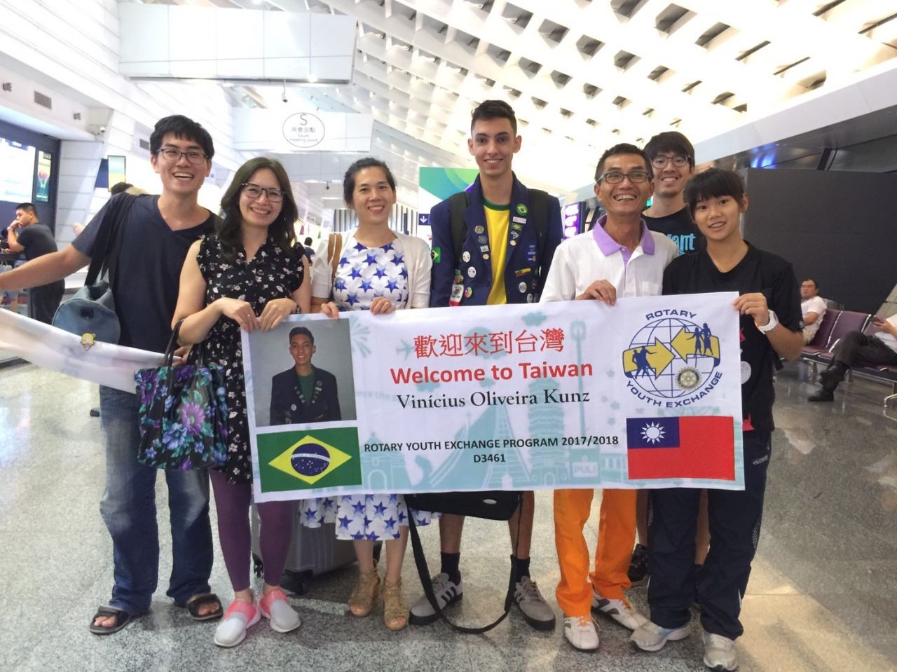 Após três dias de prazerosa viagem partindo de Francisco Beltrão e passando por Foz do Iguaçu, São Paulo, Johannesburg (África do Sul), Hong Kong (China), Taipei e Taichung (Taiwan), nosso intercambiado e a família rotária foram surpreendidos pela calorosa recepção que ele teve na chegada em Taipei. Lá estavam as duas primeiras famílias anfitriãs e rotarianos transmitindo carisma e segurança que este programa proporciona.