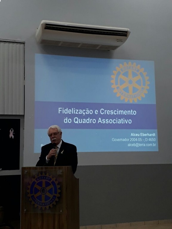 Tendo como pauta principal 2 palestras sobre DQA com a presença dos ilustres palestrantes: primeira palestra -Governador do Distrito 4.650 gestão 2004/2005 Alceu Eberhardt e sua esposa Tânia, segunda palestra - Equipe Distrital da Comissão de Desenvolvimento do Quadro Associativo e Expansão Ademar Spinello e Marciano Tanus.