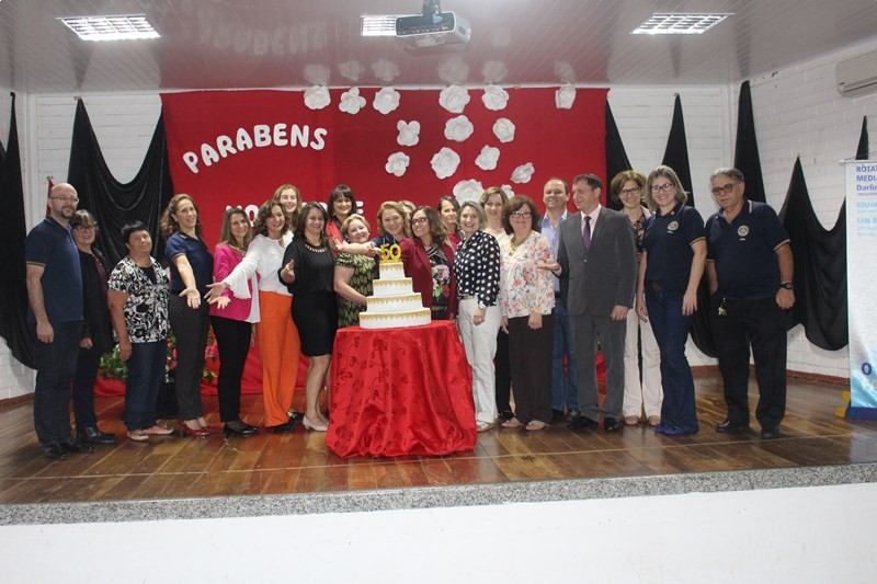 Na noite de ontem quarta-feira (25), na 15ª reunião ordinária do Rotary Club de Medianeira Rio Alegria, foi realizada uma homenagem aos 50 anos de trajetória do Colégio Estadual João Manoel Mondrone, com a presença do atual diretor, ex-diretores, professores, ex-professores, colaboradores, alunos, ex-alunos do Colégio, além dos membros do Rotary e Interact, convidados e visitantes.