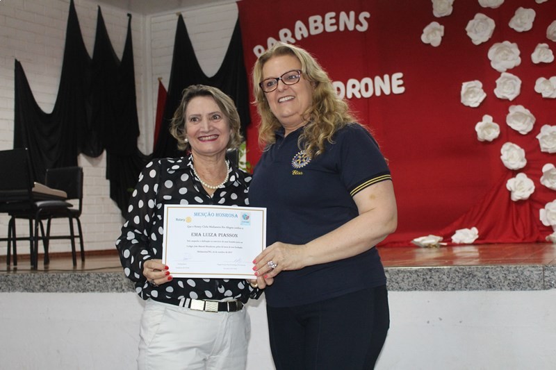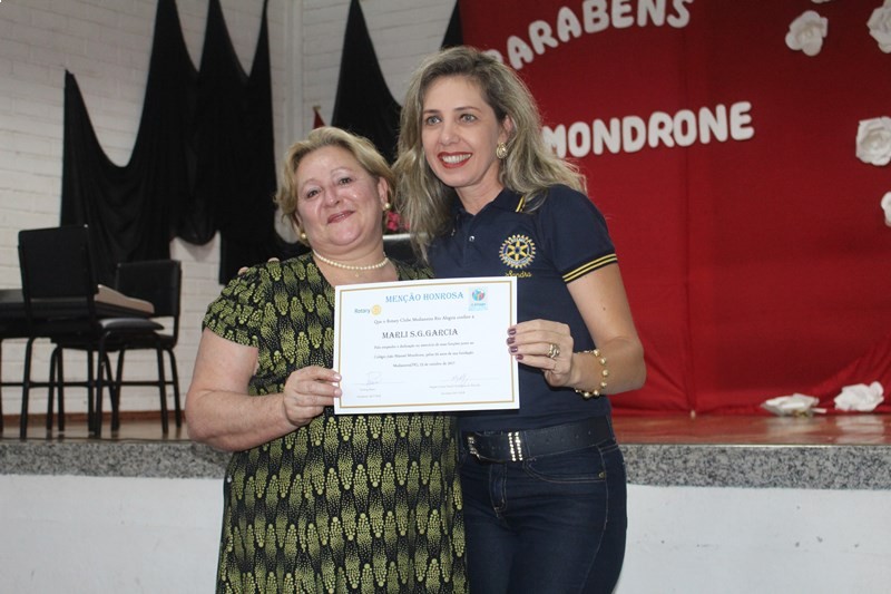 "O objetivo principal na realidade é realmente reconhecer as iniciativas do Colégio Mondrone, e tudo que o colégio já trouxe para Medianeira, hoje em termos de educação o Colégio Mondrone se tratando de ensino público é um dos melhores da região, realmente é para dar esse reconhecimento", enfatiza Darling Bosco, presidente do Rotary Club de Medianeira Rio Alegria.