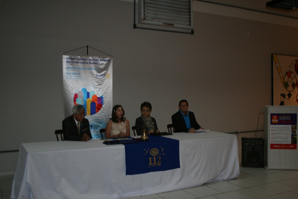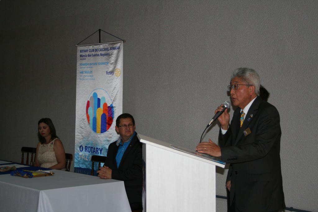 O Governador Eduardo Katsusi Toshimitsu e sua esposa Hilaide Setsuko Toshimitsu foram recebidos pelo Rotary Club de Cascavel-Sonhar no dia 01 de novembro. O governador e sua esposa tiveram a oportunidade de visitar a prefeitura, participar do programa Atualidades da TV Tarobá e o governador foi entrevistado pelo Jornal O Paraná. À noite o governador pode conversar com a diretoria do clube. Ele falou sobre DQA - a importância do companheirismo na retenção dos sócios-, Fundação Rotária - passo a passo para fazer projetos utilizando o subsídio distrital e global, além de frisar a importância da utilização efetiva desses fundos - e também falou da importância do trabalho da Comissão de Imagem Pública. Mais tarde o governador e sua esposa participaram de uma reunião solene onde foram empossados 4 novos membros do clube, 4 Reconhecimentos Companheiro Paul Harris foram entregues e houve uma homenagem aos membros fundadores do clube. Após a solenidade, os companheiros disfrutaram de um saboroso jantar em companhia de suas famílias e convidados. O clube agradece a visita do Governador Eduardo Katsusi Toshimitsu e sua esposa Hilaide Setsuko Toshimitsu, foi um momento valioso de trocas de experiências e aprendizados. Agradecemos também aos convidados, à familia dos nossos sócios sempre presente, e desejamos uma estrada muito longa no Rotary para os nossos 4 novos associados, Cleide Oldoni, Maria de Mattos, Alex e Valesca Folha.