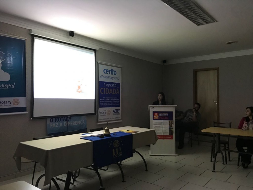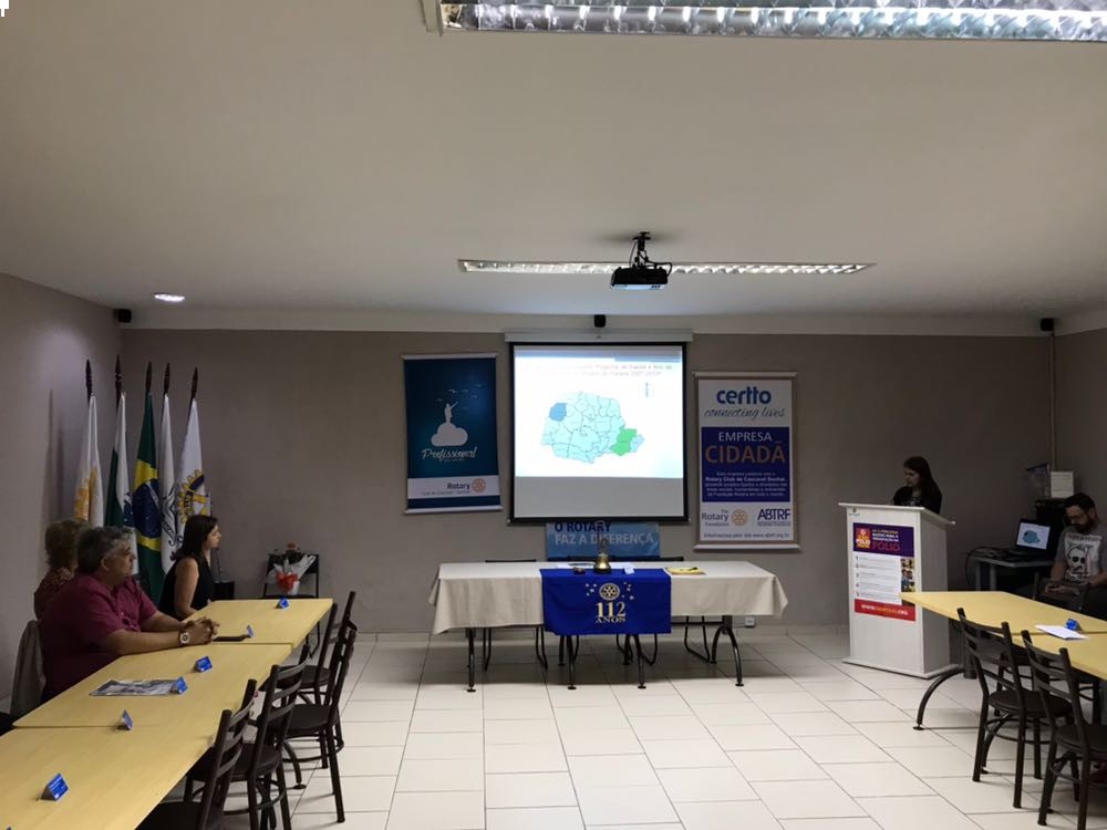 Em alusão ao Dia Mundial de Combate à Poliomielite (24/10), o Rotary Club de Cascavel-Sonhar recebe a gerente distrital da secretaria municipal de saúde e enfermeira fiscal da vigilância sanitária epidemiológica e imunização, Elisabete Nagi, para uma palestra. Elisabete fez um histórico da doença, explicou como a doença age, a questão das sequelas e do desenvolvimento da vacina. O vírus selvagem da doença ainda persiste em três países e não podemos nos descuidar. O clube agradece a visita de Elisabete, sua palestra foi muito interessante e esclarecedora!