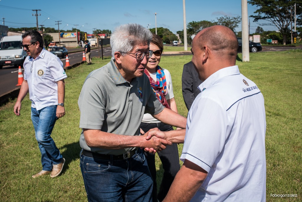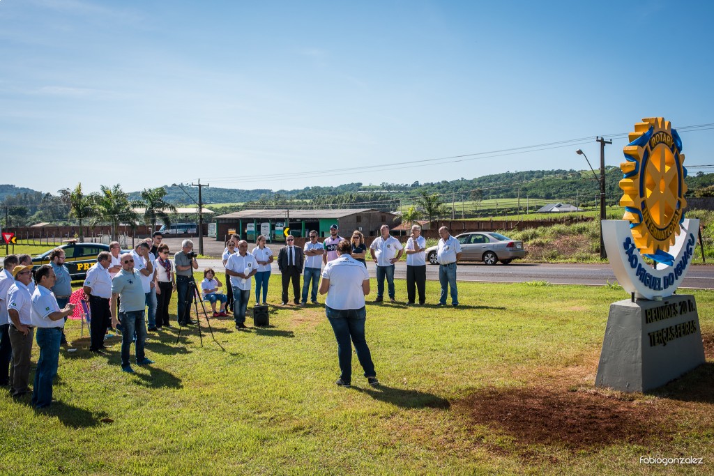 O casal Governador foi recebido pelo Presidente do Rotary Club de São Miguel do Iguaçu, Raulique Farias e pelos companheiros do clube no canteiro central da BR 277 para inauguração do Marco Rotário do clube, um belíssimo momento que era aguardado por muitos anos pelos companheiros.