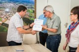 Após, foram recebidos na prefeitura municipal pelo prefeito Claudio Dutra e vice-prefeito Albino Bissolotti, onde foram declarados hóspedes oficiais do município.