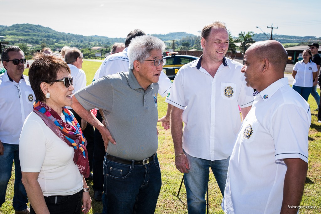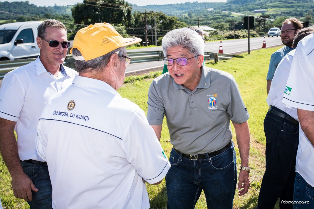 Entre os presentes o presidente do Rotary Club de São Miguel do Iguaçu, Raulique Farias e sua esposa Marlei Scussel Farias, presidente da ASR; o Governador do Distrito 4640, Eduardo Katsusi Toshimitsu e sua esposa Hilaide Toshimitsu; Lúcio Giehl, Governador Assistente da gestão 2017/2018; Polícia Rodoviária Federal e Rodovia das Cataratas e membros do Rotary Club de São Miguel do Iguaçu.